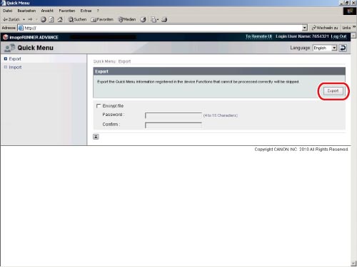 Rufen Sie die Seite "Exportieren" durch Anklicken von [Export] auf.