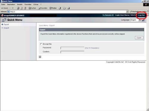 Klicken Sie nach dem Speichern der Datei auf [Logout].