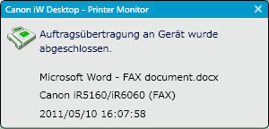 Wird im Zeitraum zwischen dem Beginn des Spoolvorgangs durch den Windows-Spooler und der Fertigstellung des Faxsendeauftrags an imageRUNNER ADVANCE angezeigt.