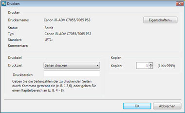 Wählen Sie in [Druckziel] die Option [Dokument (Alle Seiten)] oder [Seiten drucken].