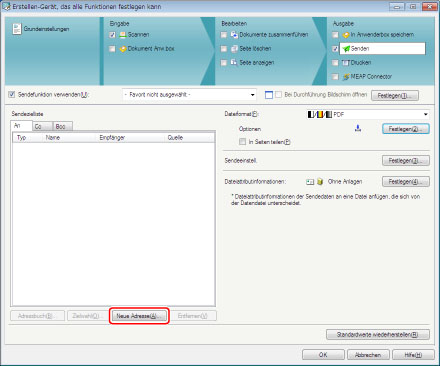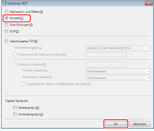 Wählen Sie [PDF] für [Dateiformat] → Klicken Sie auf [Festlegen (2)].