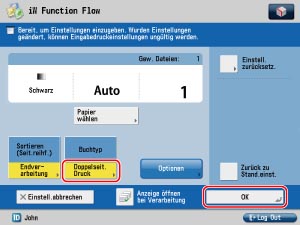 Dieser Abschnitt beschreibt, wie Sie einen Ablauf duplizieren/bearbeiten und doppelseitigen Druck einzustellen, um einen privaten Ablauf zu erstellen.