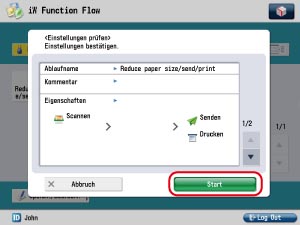 Prüfen Sie die Ablaufeinstellungen → Berühren Sie die Taste [Start].