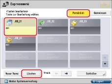Wählen Sie [Persönlich] → Wählen Sie die persönliche Taste, die Sie löschen möchten → Berühren Sie die Taste [Löschen].