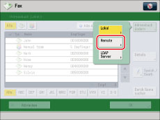 Um das Remote-Adressbuch zu verwenden, sind die Einstellungen für [Remote-Adressbuch erfassen] erforderlich. (Vgl. Abschnitt "Herunterladen des Remote Adressbuchs".)