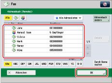 Sie können auch Empfänger, die in den Zielwahltasten eines Server-Systems gespeichert sind, durch Zugriff von einem Client-System im Netzwerk durchsuchen. (Vgl. "Definieren von Empfängern per Zielwahltasten".)