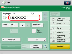 Geben Sie die Faxnummer des Empfängers über die Zahlentasten - , und ein.