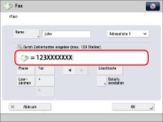 Geben Sie einen Namen für die Faxnummer (Empfänger) ein → Berühren Sie die Taste [OK].