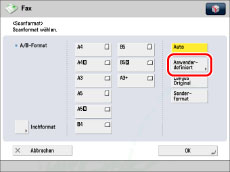 Berühren Sie die Taste [Fax] → Berühren Sie die Scanformat-Taste.