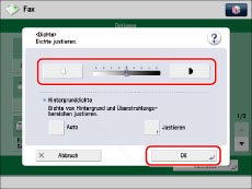 , um die Dichte des Originals zu justieren → Berühren Sie nacheinander die Tasten [OK] → [Schließen].