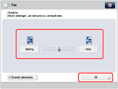 Die Einstellung für [Schärfe] wird ignoriert, wenn die folgenden Bedingungen erfüllt sind. Die Einstellung wird dann zwar bei dem unter [Vorschau] angezeigten Bild, nicht jedoch beim tatsächlichen Scan berücksichtigt.
