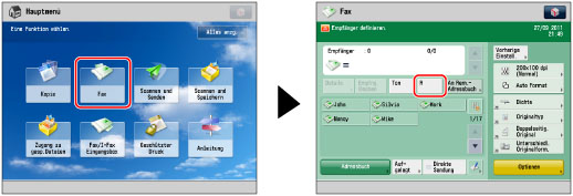Berühren Sie nacheinander die Tasten [Fax] → [R].