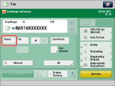 Die Pause muss so lang sein, dass Sie das Freizeichen der Amtsleitung hören, bevor die Faxnummer gewählt wird.