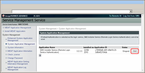 Wenn Sie sich mit Anwendernamen und Passwort für das System angemeldet haben: Sie können den Login Service (Password Authentication) für das SMS-Passwort starten/stoppen.
