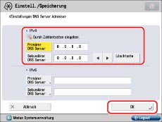 Wenn Sie in Schritt 5 [BOOTP] oder [DHCP aktivier.] aktivieren, wird die IP-Adresse eines DNS-Servers überschrieben, den Sie manuell eingestellt haben.