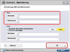 Wenn Sie [BOOTP] oder [DHCP aktivier.] in Schritt 5 aktiviert haben, werden die Angaben zum Hostnamen und Domänennamen überschrieben, die Sie manuell festgelegt haben.