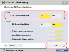 Sie können automatisch die Angaben zur IPv4-Adresse, zum Hostnamen und Domänennamen automatisch registrieren, die für das System im DNS-Server mit dem dynamischen DNS-Update eingestellt wurden. Ein dynamischer DNS-Server ist für das dynamische DNS-Update erforderlich.