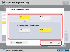 Wenn Sie eine bidirektionale Kommunikation einrichten möchten, berühren Sie [Ein] für <Bidirektionale Kommunikation>.
