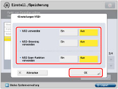 Wenn Sie die Funktion WSD Scan verwenden möchten, berühren Sie [Ein] für <WSD Scan-Funktion verwenden>. [HTTP verwenden] wird automatisch aktiviert, wenn Sie [Ein] wählen. Nähere Informationen über die Funktion WSD Scan finden Sie im Abschnitt