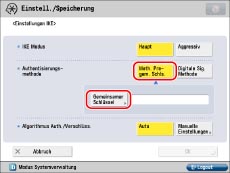 Berühren Sie [Meth. Pregem. Schls.] für <Authentisierungsmethode> → [Gemeinsamer Schlüssel].