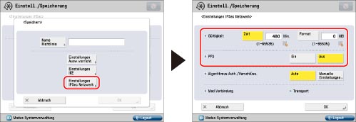 [Aus] für <PFS>: Wenn bei deaktivierter PFS-Funktion ein Verschlüsselungsschlüssel in den Besitz Dritter gelangt, können andere Verschlüsselungsschlüssel erraten werden. Wenn Sie <PFS> auf 'Ein' setzen, muss für das Ziel der PFS-Kommunikation PFS auch aktiviert sein.