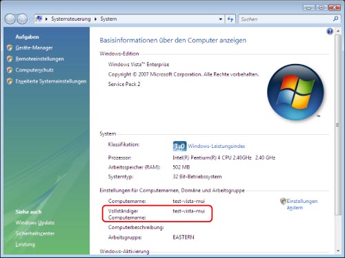 Klicken Sie auf die Registerkarte [Computername] → Bestätigen Sie [Vollständiger Computername] → Klicken Sie auf [Abbrechen].