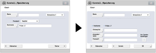 Wenn die Sprache auf dem Display von der auf dem Computer abweicht, den Sie als Hauptsuchdienst verwenden, werden die Angaben zu [Hostname] und [Ordnerpfad] möglicherweise nicht richtig angezeigt, oder Sie können die Verzeichnisse möglicherweise nicht richtig durchsuchen.