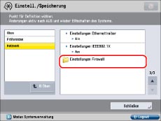 Berühren Sie [Präferenzen] → [Netzwerk] → [Einstellungen Firewall].