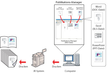 Publishing Manager ermöglicht Ihnen die effiziente Erstellung von Dokumenten durch die optimale Nutzung der Funktionen von Canon-Systemen.