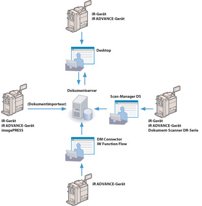 iW Scan Manager DS ist eine Software zum Scannen von Papierdokumenten in einen Computer mit Hochgeschwindigkeit und zur effizienten Eingabe der Verwaltungsinformationen (Indexdaten) gescannter Dokumente in Zusammenhang mit einem Eingabegerät wie den Geräten der DR-Serie (Dokumentscanner) und iR/imageRUNNER ADVANCE-Systemen.
