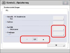 Berühren Sie die Taste [Einstellungen] → Berühren Sie die Taste oder die Taste , bis [PCL] angezeigt wird → Berühren Sie die Taste [PCL].