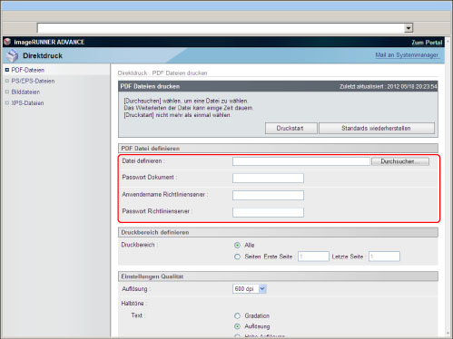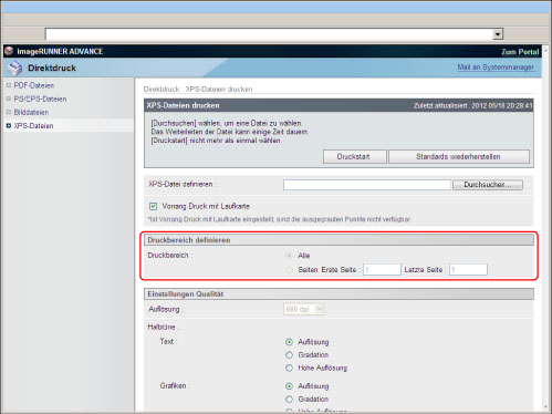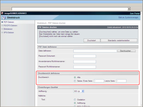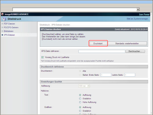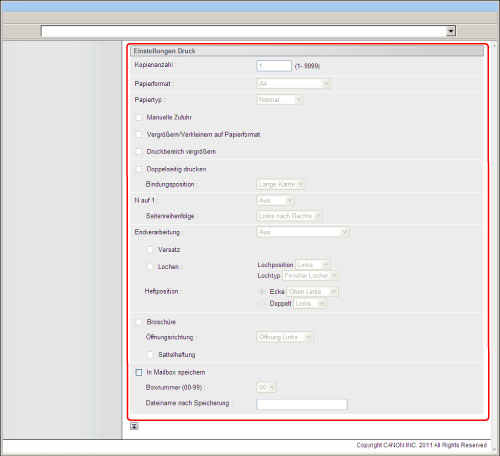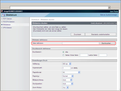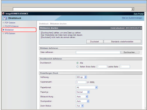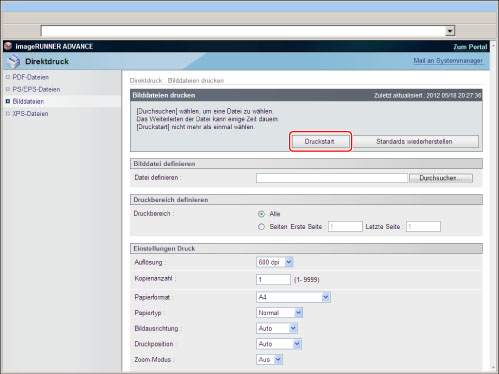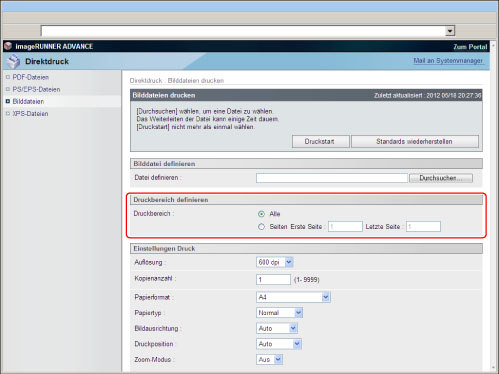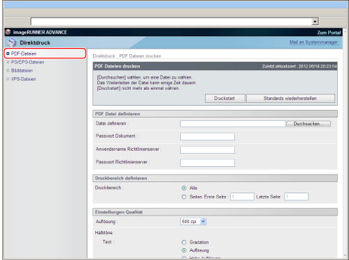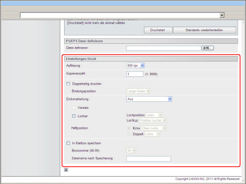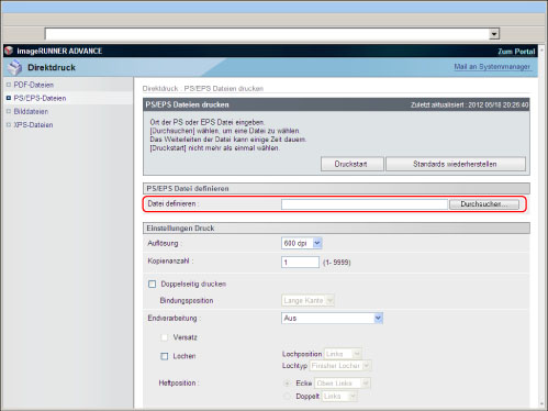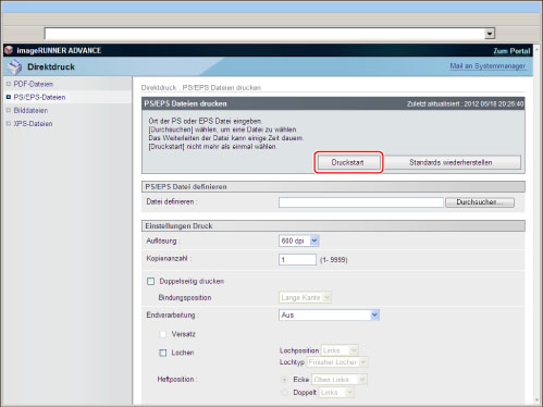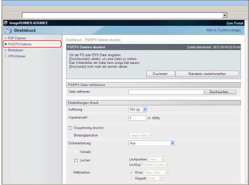 Um PS/EPS-Dateien direkt über das Remote UI zu drucken, muss das PS Printer Kit aktiviert sein.