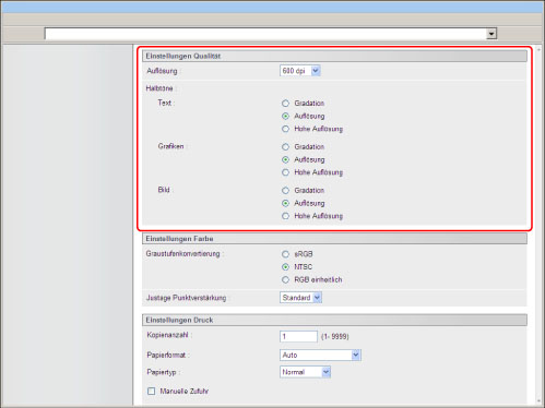 Mit dieser Einstellung definieren Sie die Auflösung zum Drucken.