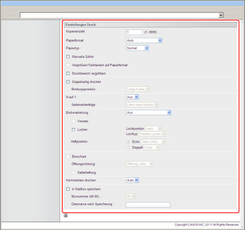 Zum Drucken durch Festlegen einer URL muss [Referenzdruck verw.] in [Remote UI] in [Einstellungen Verwaltung] (<Einstellungen/Speicherung>) aktiviert werden.