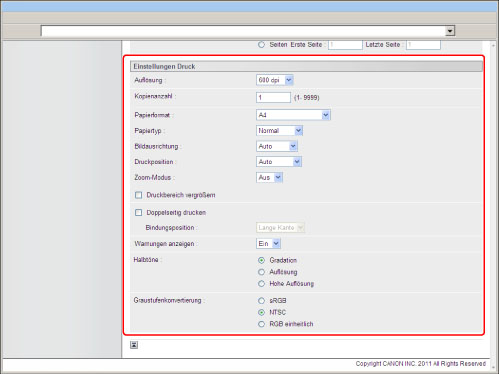 Sie können die Auflösung für den Druck festlegen.