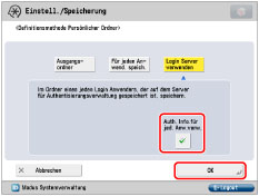 Ein Login Service erforderlich, der diese Funktion unterstützt. Für weitere Informationen wenden Sie sich an Ihren Canon-Vertriebspartner.