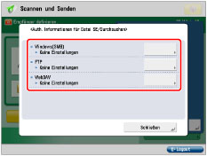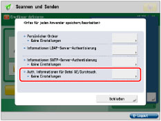 Verwendet die im System eingestellten Informationen für Dateiserver-Authentisierungsinformationen. (Vgl. Abschnitt "Speichern einer Dateiserver-Adresse".) Weitere Einstellungen sind nicht für jeden Anwender erforderlich.