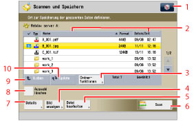 Nähere Informationen zur Einrichtung von Ordnern, Überprüfung von Detailinformationen zur Datei und Bearbeitung/Löschung von Dateien finden Sie im Abschnitt "Zugang zu gespeicherten Dateien".