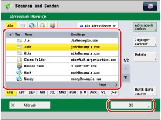 Sie können auch Empfänger, die in den Zielwahltasten eines Server-Systems gespeichert sind, von einem Client-System im Netzwerk durchsuchen. (Vgl. Abschnitt "Definieren von Empfängern per Zielwahltasten".)