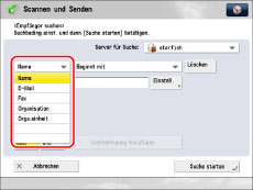 Wenn Sie die Taste [Suche starten] ohne Eingabe von Suchkriterien berührt haben, werden alle auf dem LDAP-Server gespeicherten Adressen angezeigt.