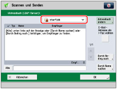 [Adressbuch ändern] wird nur angezeigt, wenn das Remote-Adressbuch und der LDAP-Server registriert sind. Wenn nur der LDAP-Server auf dem System registriert ist, wird [An LDAP-Server] angezeigt.