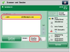 Sie können die Angaben zum definierten Empfänger vor dem Einscannen des Dokuments prüfen. bearbeiten oder löschen.