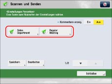 Berühren Sie nacheinander die Tasten [Scannen und Senden] → [Einstell. Favoriten].
