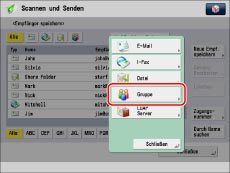 Bevor Sie eine Gruppenadresse speichern, müssen Sie die darin aufzunehmenden Empfänger (E-Mail-/Dateiserveradressen usw.) bereits einzeln gespeichert haben.