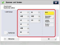 Berühren Sie die Taste [Scannen und Senden] → Berühren Sie die Scanformat-Taste.