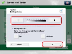 Berühren Sie die Taste oder , um die Dichte des Originals zu justieren → Berühren Sie nacheinander die Tasten [OK] → [Schließen].