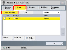 Zeigt Detailinformationen zum ausgewählten Auftrag an. Prüfen Sie die Detailinformationen → Berühren Sie die Taste [OK], um zum Display Senden zurückzukehren.