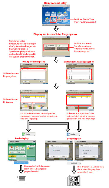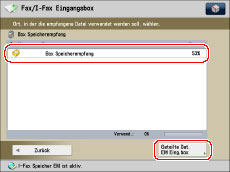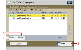 Wir empfehlen, nicht benötigte Dateien und Bilddaten aus der Fax-/I-Fax Eingangsbox zu löschen, damit Platz für die Speicherung weiterer Dateien verfügbar wird.