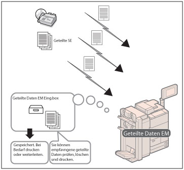 Berühren Sie diese Taste, um den Status der geteilten Daten und die restliche Kapazität von <Geteilte Daten EM Eing.box> zu prüfen.
