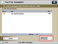 Berühren Sie nacheinander die Tasten [Fax/I-Fax Eingangsbox] → [Box Speicherempfang].